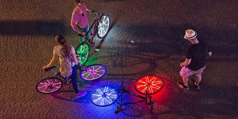 - Radlicht (7, 8 or 9 tubes model of any color for 1 bike wheel). Just one is fantastic! Put it on your rear wheel, it looks great riding and also you can hold the bike up and spin it easily to show your friends.